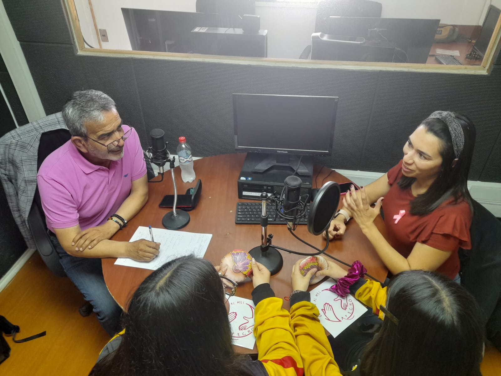 Una nueva entrevista se llevó a cabo en los estudios de Radio Manantiales On Line, en esta oportunidad nuestro profesor conductor entrevistó a Camila Negrete Castellón, sobreviviente de cáncer de mama y que promoción de un emprendimiento de Salud Femenina @Apecho_Chile en la oportunidad las alumnas Isidora Berenguela y Milenka Cruz intercambiaron opiniones y visiones sobre la importancia de tratar en forma temprana todo lo referido al cuidado y hábitos preventivos en materia de Salud Femenina. Una muy buena conversación que se tendrá presente en próximas jornadas radiales.