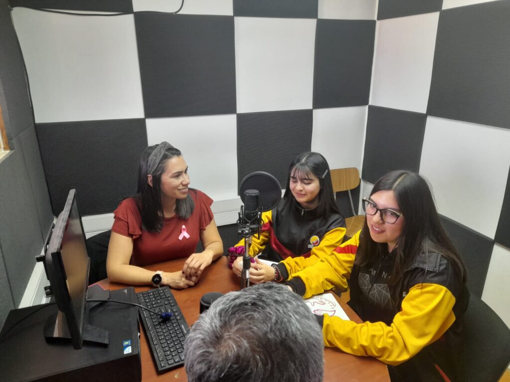 Una nueva entrevista se llevó a cabo en los estudios de Radio Manantiales On Line, en esta oportunidad nuestro profesor conductor entrevistó a Camila Negrete Castellón, sobreviviente de cáncer de mama y que promoción de un emprendimiento de Salud Femenina @Apecho_Chile en la oportunidad las alumnas Isidora Berenguela y Milenka Cruz intercambiaron opiniones y visiones
